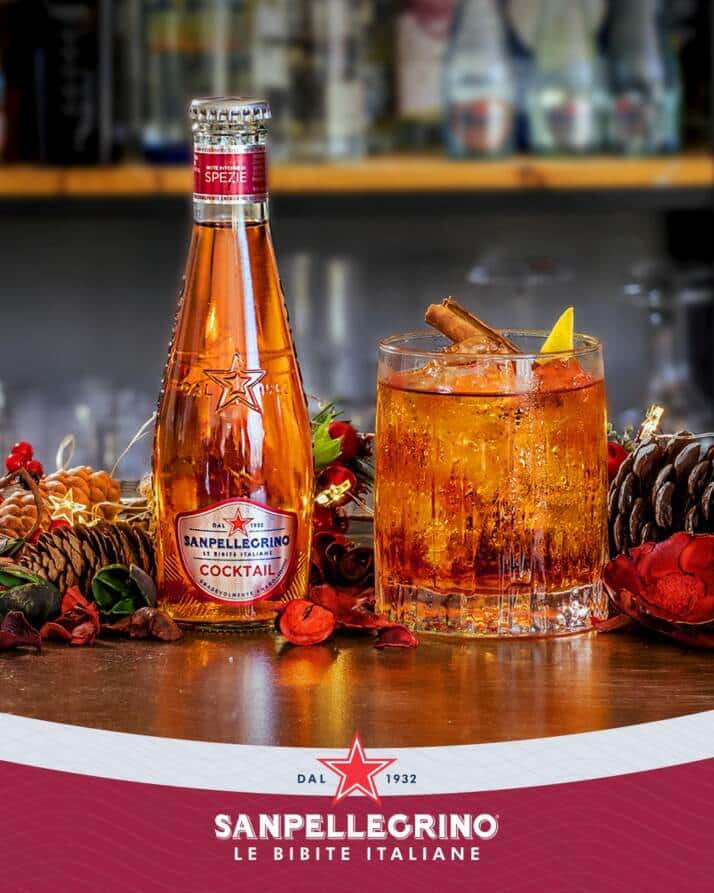 A koktél Sanpellegrino utánozhatatlan kellemesen kesernyés, fűszeres ízével, enyhén fahéjjal, majd gyömbérrel garantáltan elvarázsol.