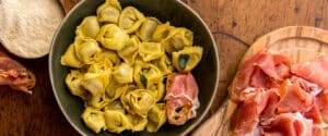 Durum búzából készült tojásos száraztészta nyers sonkával töltve.