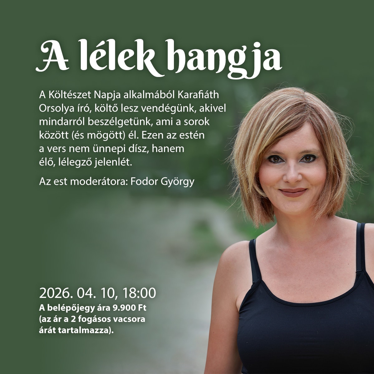Karafiáth Orsolya irodalmi estje Gyulán – Költészet Napja 2026