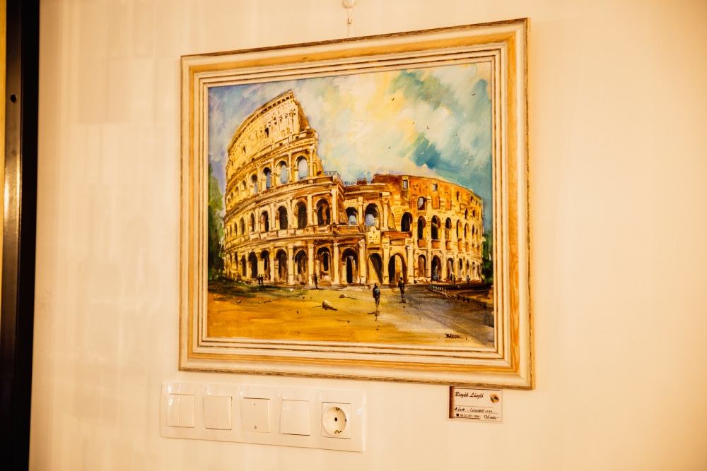 Gyulai származású, Szekszárdon élő festőművész. Rajzzal-festészettel először Gyulán kezdett foglalkozni Koszta Rozália festőművész biztatására. Tanulmányait autodidakta módon folytatta, és szorgalma, illetve a művészet iránti szerelme képein visszatükröződnek, hiszen bármely alkotását nézve tátva marad a szánk. 1989-ben került Szekszárdra, itt megismerkedtem Cseh Gábor festőművésszel. Aki a szárnyai alá vette, és mai napig is segítője és tanítója. Festményeiben több stílus és technika fedezhető fel. László nem kötelezte el magát egyetlen irányzat mellett sem. Harminc éves korában volt az első önálló kiállítása Szedresben. Azóta pedig több száz önálló kiállítása volt, Törökországtól Hollandiáig megfordult számtalan országban a festészet által. Mai napig képzi magát, mivel évente 6-8 alkotótáboron vesz részt. Lászlót idézve: „ez az én iskolám.” A kávézóban szereplő képeket kifejezetten a mi kérésünkre festette, melyeket nézve szinte már Olaszországban érezhetjük magunkat.