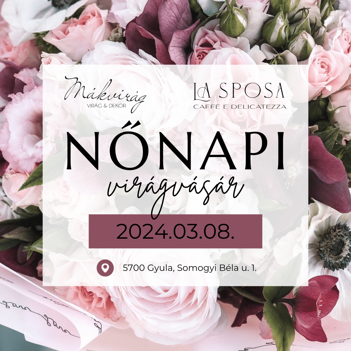 Március 8-án virágvásár lesz a Mákvirág Virág&Dekor közreműködésével a La Sposa Caffe-ban.